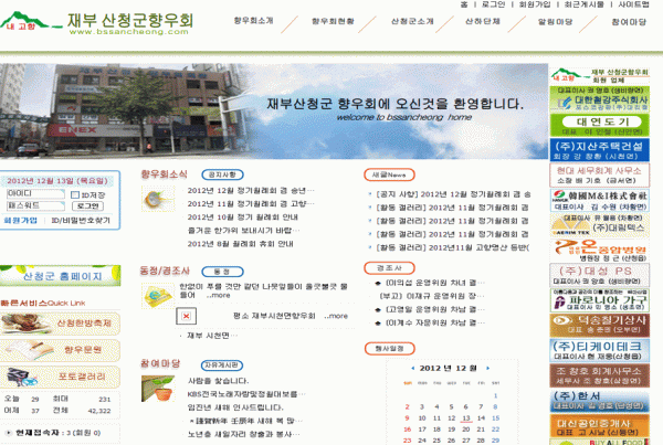 향우회 | 재부 산청군 향우회 홈페이지 구축 페이지 정보 작성자 차동박(14) 작성일10-01-22 14:27 조회33,674회 댓글0건 관련링크 목록 본문 2010년 1월 22일자로 재부 산청군 향우회 홈페이지를 오픈하였습니다. http://www.bssancheong.com 댓글목록 등록된 댓글이 없습니다. 목록