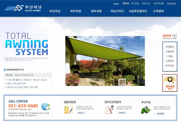 자동. 수동 처마 천막 제조 전문 부산 어닝의 홈페이지를 이전 받은 다음,