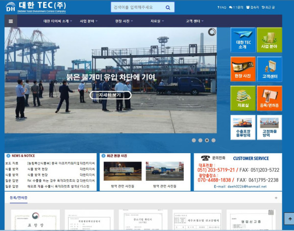 일반 기업체 | 항만 방역의 선두기업 (주)대한 TEC 홈페이지 신규 제작 구축 페이지 정보 작성자 차동박 작성일18-08-20 18:24 조회256,165회 댓글0건 관련링크 목록 본문 붉은 불개미를 비롯한 수출 수입 컨테이너 등 항만 방역의 선두기업 (주)대한 TEC 홈페이지를 신규 제작 구축하였습니다. (주) 대한 TEC 홈페이지 : http://daehantec.co.kr 댓글목록 등록된 댓글이 없습니다. 목록